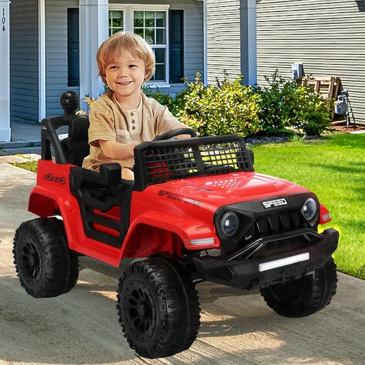 12V 7AH 4WD Electric Ride On Car with Remote Control, 30W*2 Motors, One-Button Start, Leather Seat, LED Lights, Music, Power Display, Openable Doors & Four-Wheel Suspension