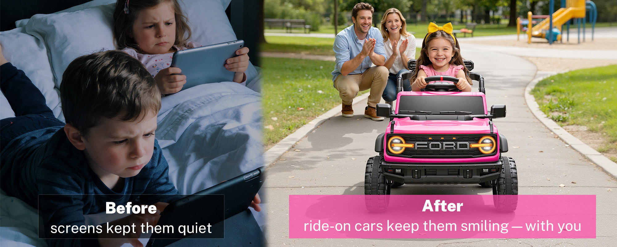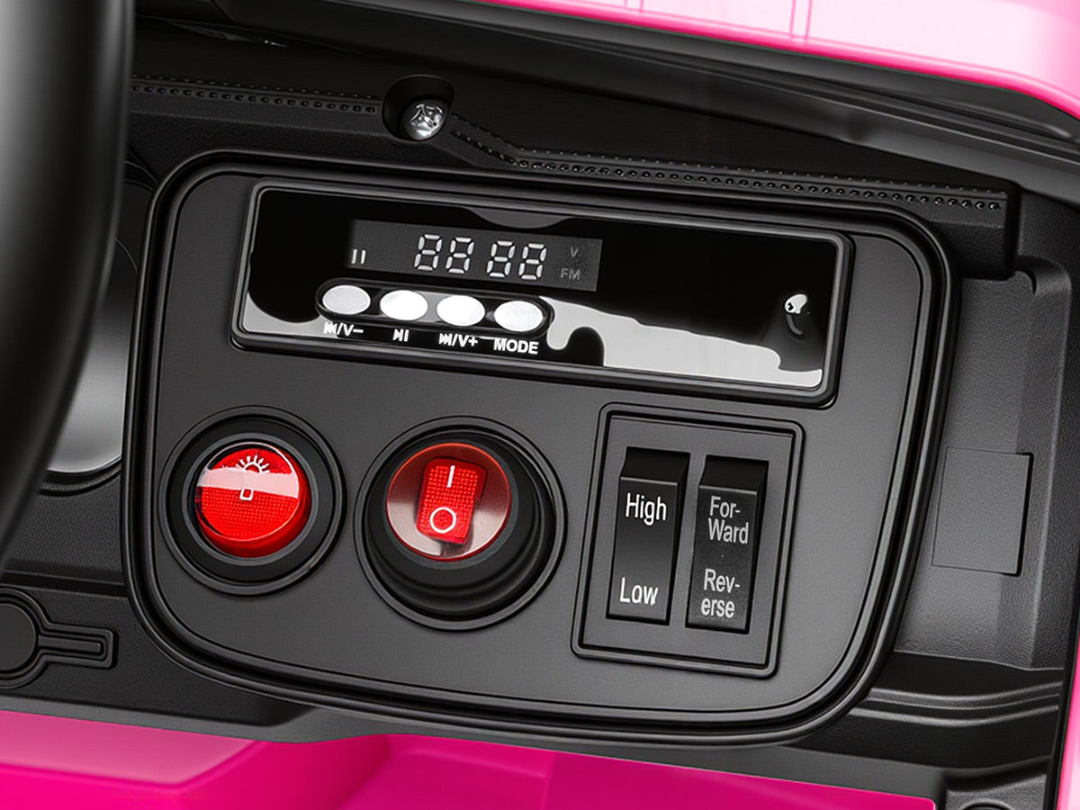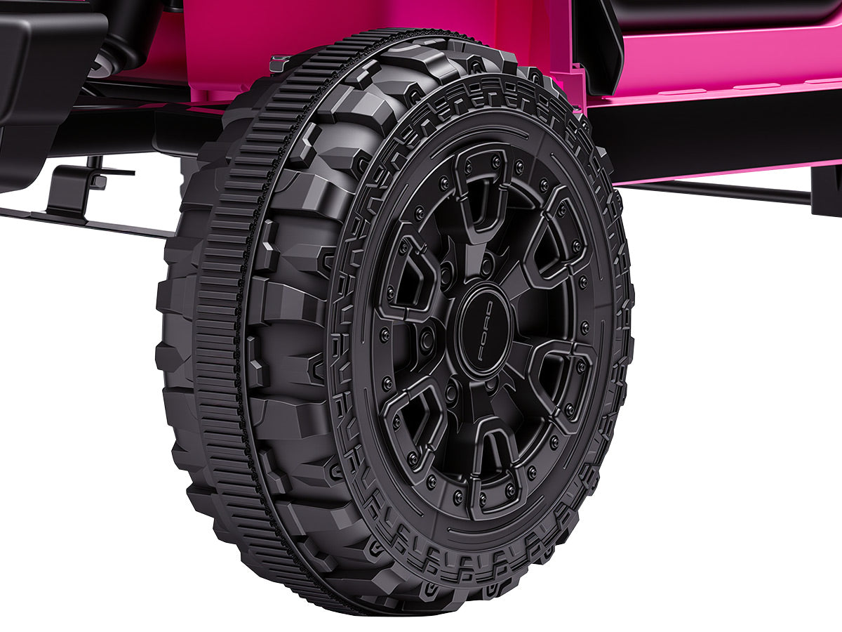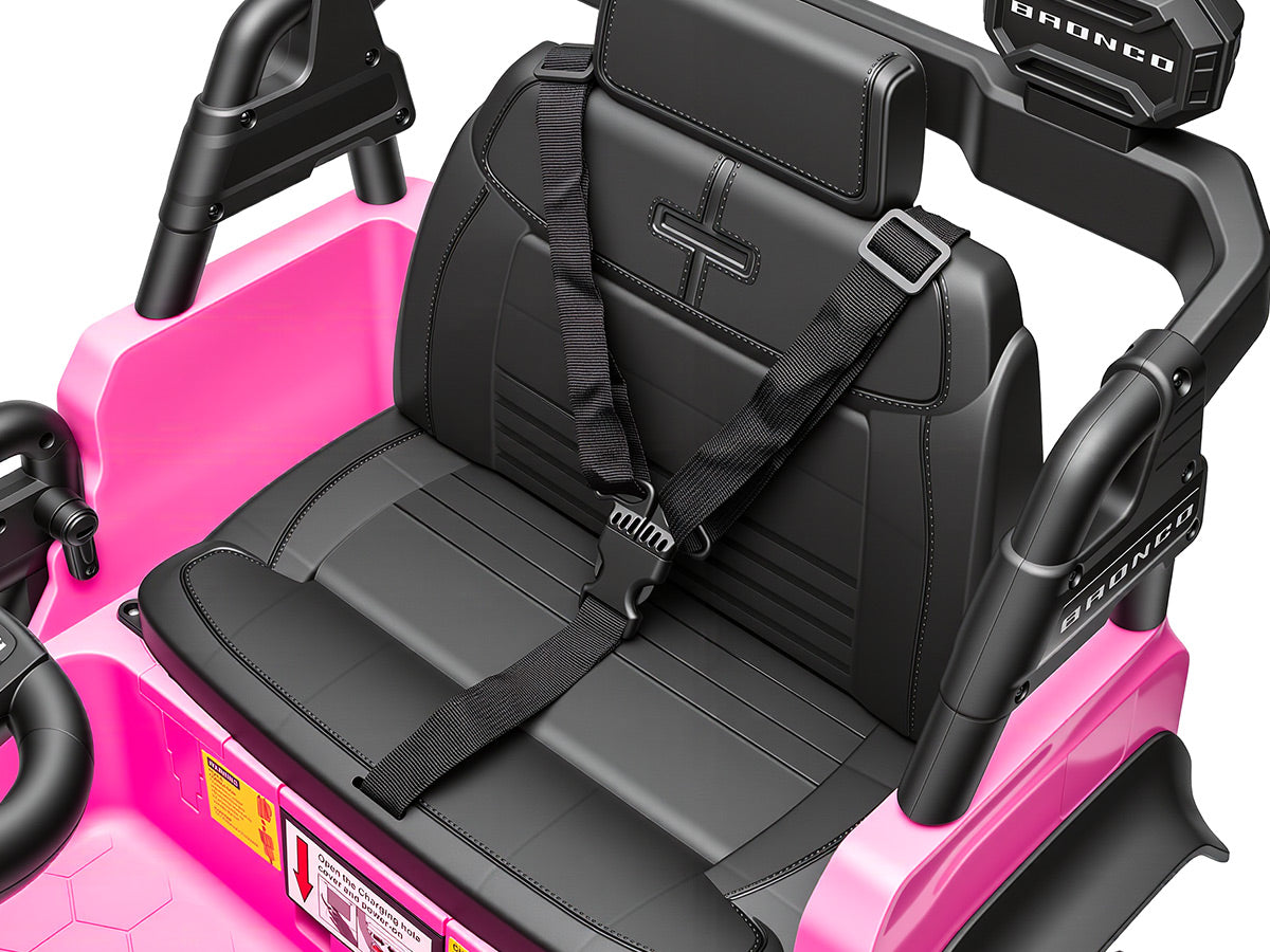 12V Ford Bronco Raptor powered ride on truck toy car is a globally debuting, officially licensed ride on electric toy car by Ford. Electric toy car is designed to help kids develop good traffic safety awareness and driving skills while enhancing fun emotional interaction with parents. Electric toy car is ideal for kids aged 3-5, and pink, red, black, and blue ride on cars are available for your boys and girls gifts.