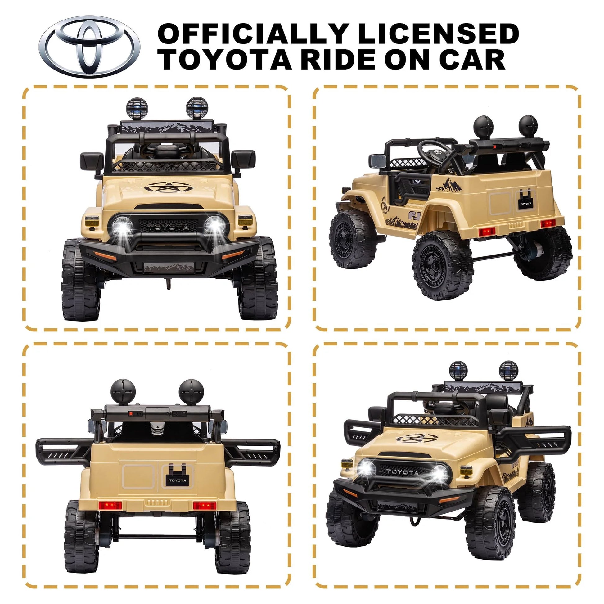 【🚗 Unleash Adventure with Our Ultimate Ride-On Cars! 🚗】--Get ready to embark on a journey of unbridled joy and imagination with our exceptional 12V Licensed TOYOTA FJ Cruiser Kids Ride-On toys! Designed to captivate young hearts and elevate playtime to a new level, this ride on cars isn't just a toy – it's a gateway to unforgettable adventures.