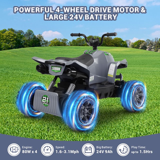 Exciting Outdoor Adventure: Perfect for outdoor fun, this ride-on ATV features a powerful 24V battery and four wear-resistant wheels, ensuring your kids enjoy endless adventures on various terrains.