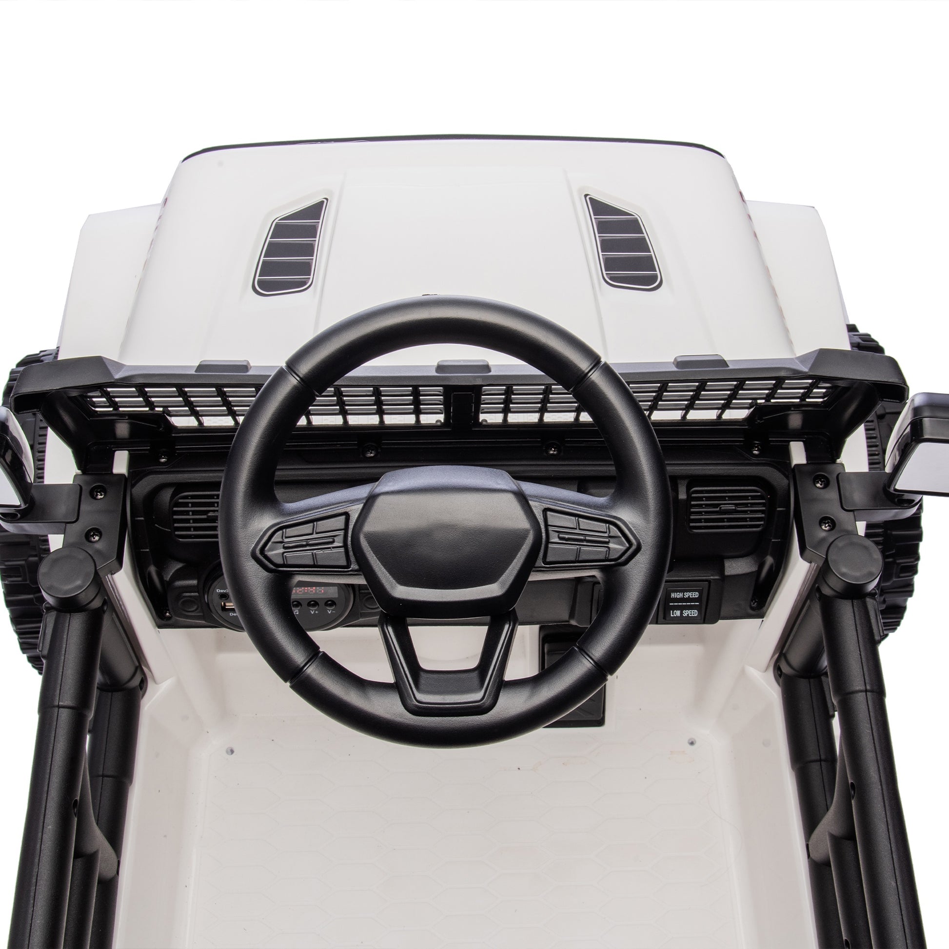 Embark on an adventure with your child! This 24V kids ride on car is designed for children aged 2-5, offering a fun and secure driving experience. The two powerful 80W motor with a four-wheel suspension system ensures smooth rides across all terrains. Parents can easily control the ride on car with remote control, ensuring their child's safety. Equipped with USB, MP3, music, and Bluetooth functions, every journey promises to be filled with joy and excitement. Whether indoors or outdoors, this 24 volt ride on car is a source of endless fun and peace of mind for your child.