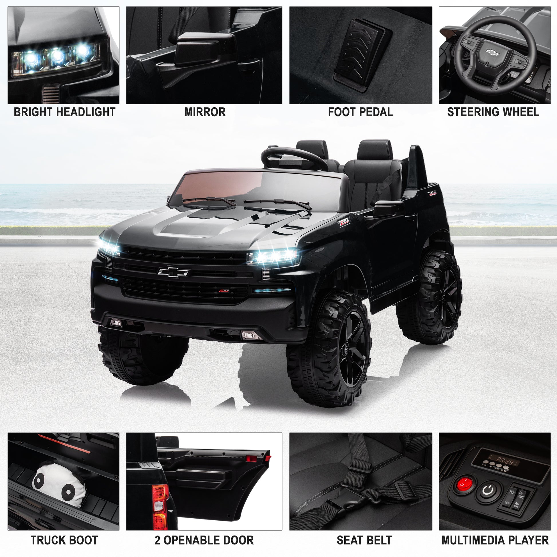Chevrolet Silverado 24V Powered Ride on Cars for Kids, Extra large Real 2 Seat Ride on Toys with Remote Control, LED Light, MP3 Player, Electric Vehicles Ride on Truck for Boys Girls Gifts, Black