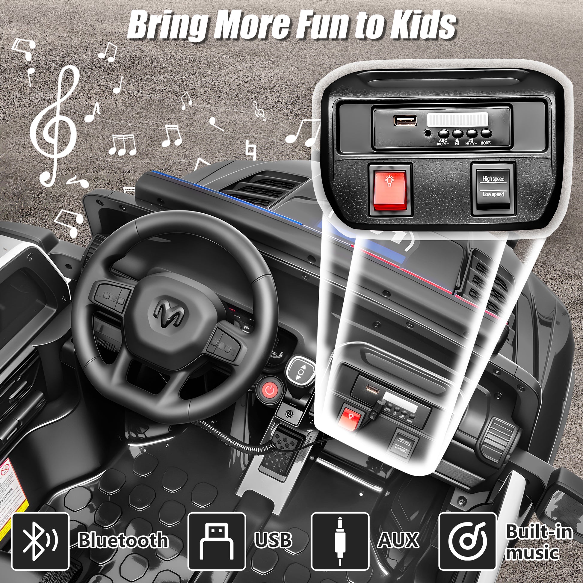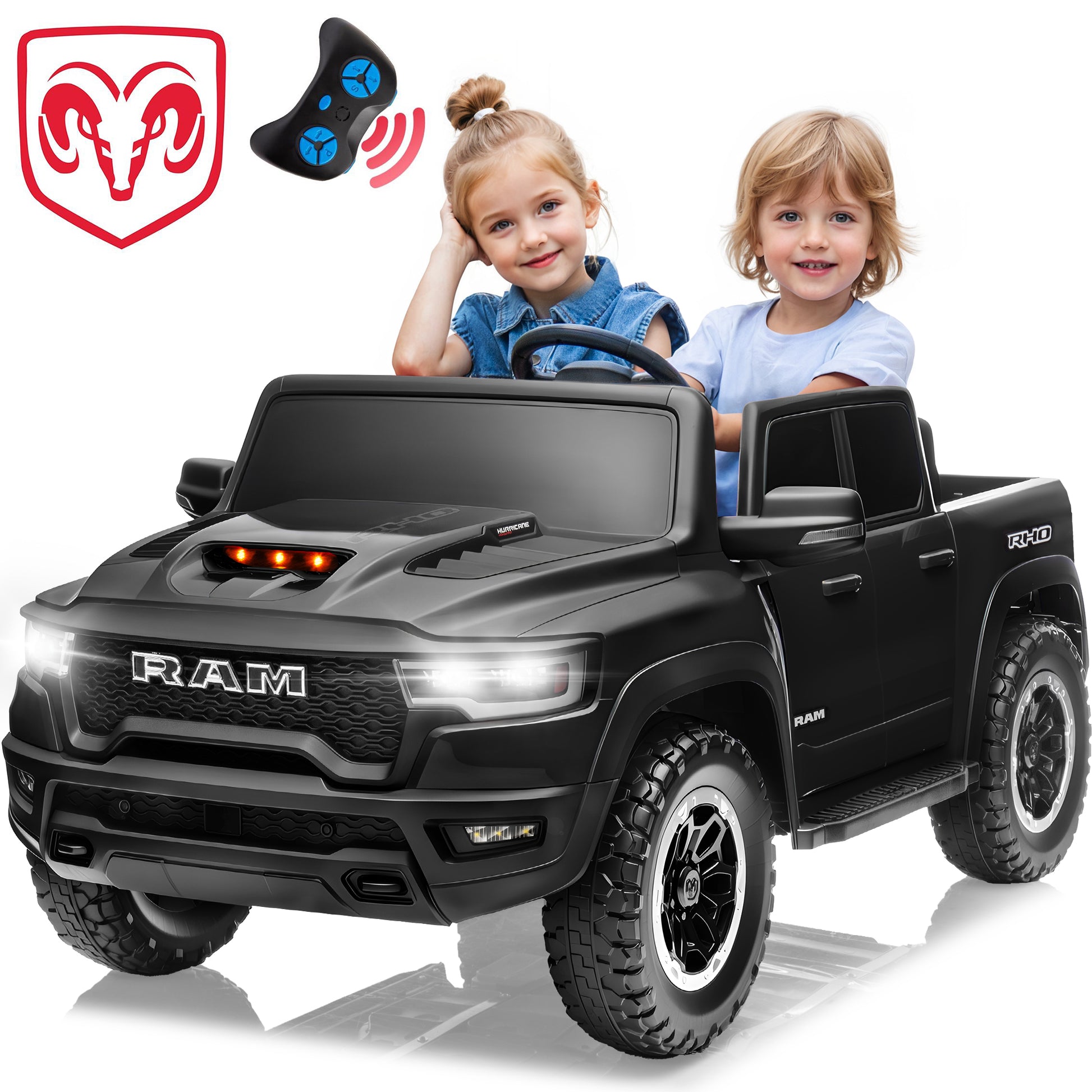 Ram Ride on Car Toys 2 Seater, 24V Ram 1500 Battery Powered Ride on Toy Truck with Remote Control, Electric Car for Kids Girls 3-8 w/ Bluetooth, Rear Storage Trunk, Safety Belt, 4 Wheelers