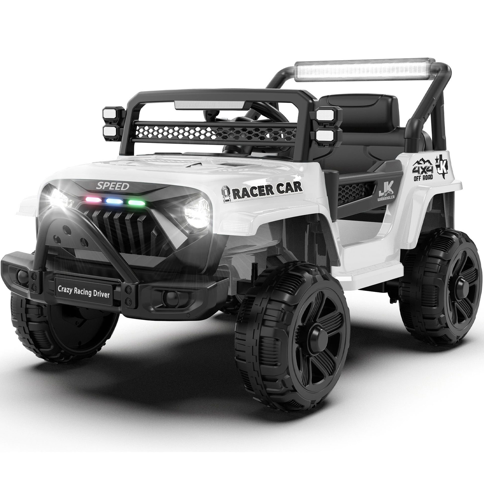 iYofe 12V Ride on Cars with Remote Control, Powered Kids Ride on Toys Truck for Boys Girls Ages 2-5, Toddler Cars Kids Electric Vehicles with Bluetooth Music, USB/MP3 Ports, 4 Wheel Suspension, White