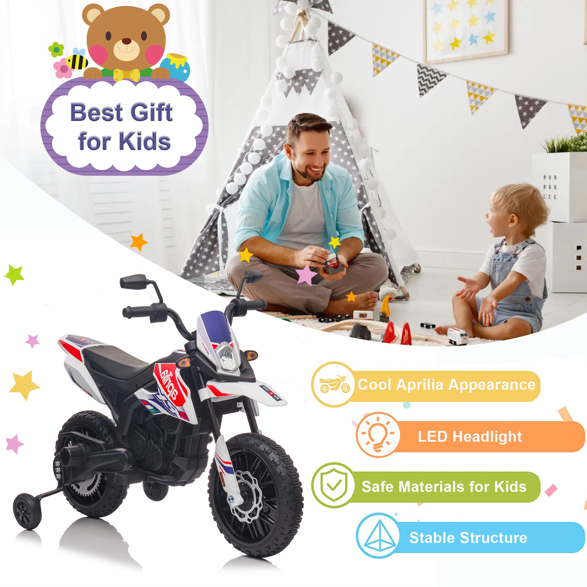 iYofe 12V Ride on Motorcycle for 3-8 Years Old Apulia Licensed Electric Dirt Bike for Boys and Girls Ride on Toy, Shock Suspension, LED Light