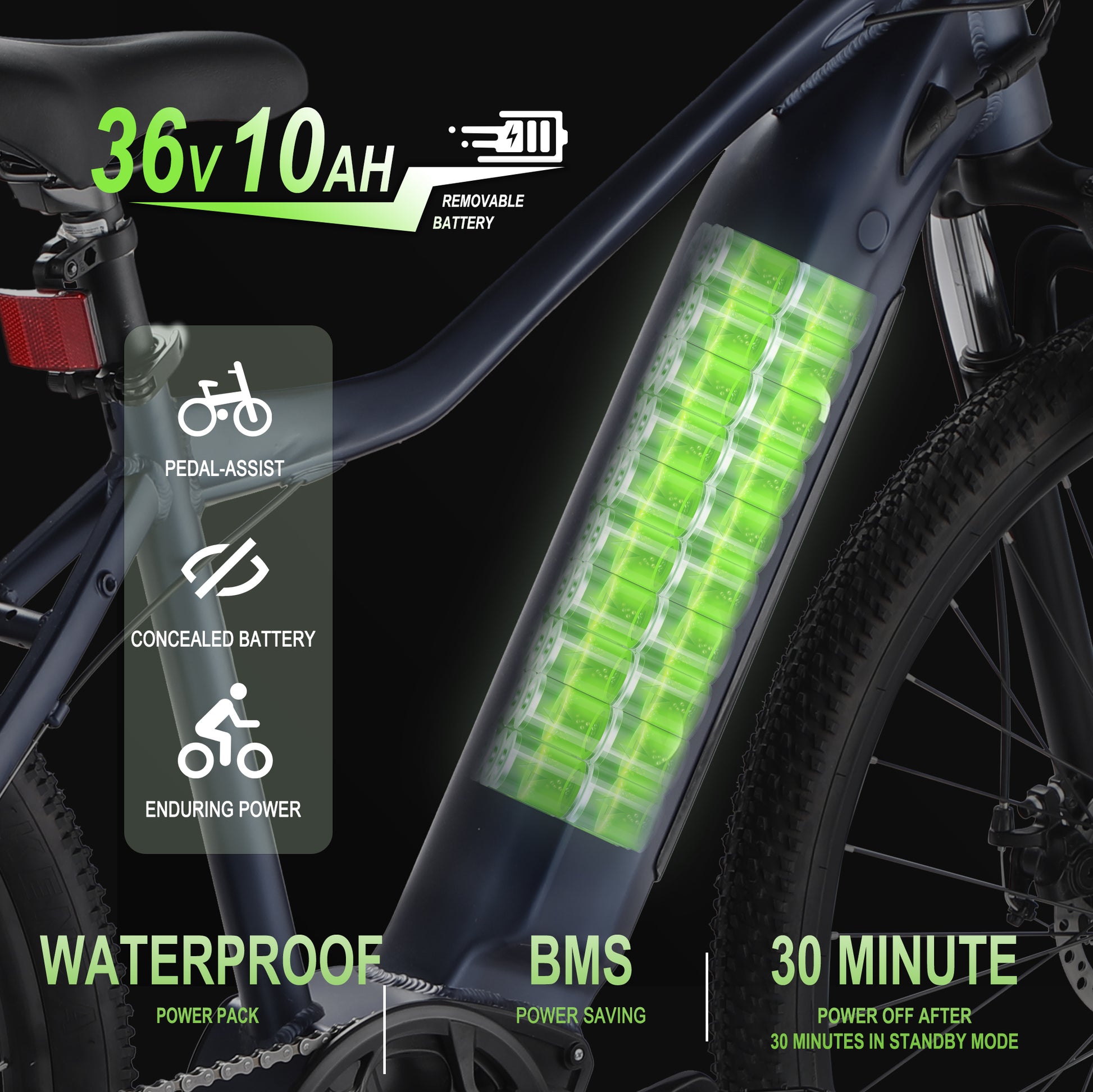 • ● [Removable Lithium Battery] - Comes with a 36V/10.4AH lithium battery. Depending on the level of assistance you use, the bike has a range of up to 50 miles, and you can take the battery to your home or office to charge it or charge it right on the bike. Charging time is about 5-6 hours.