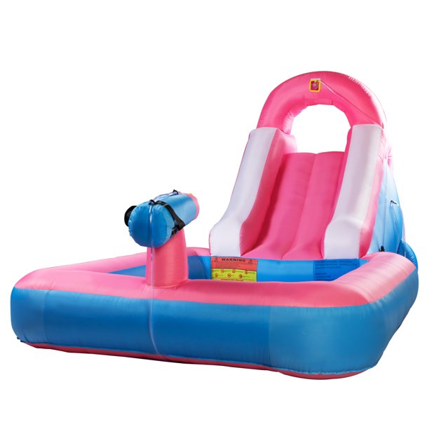 The inflatable bounce house is made of waterproof and sturdy 420D Oxford cloth. This bounce house has a plus-size slide and an open-top design for fun in the summer