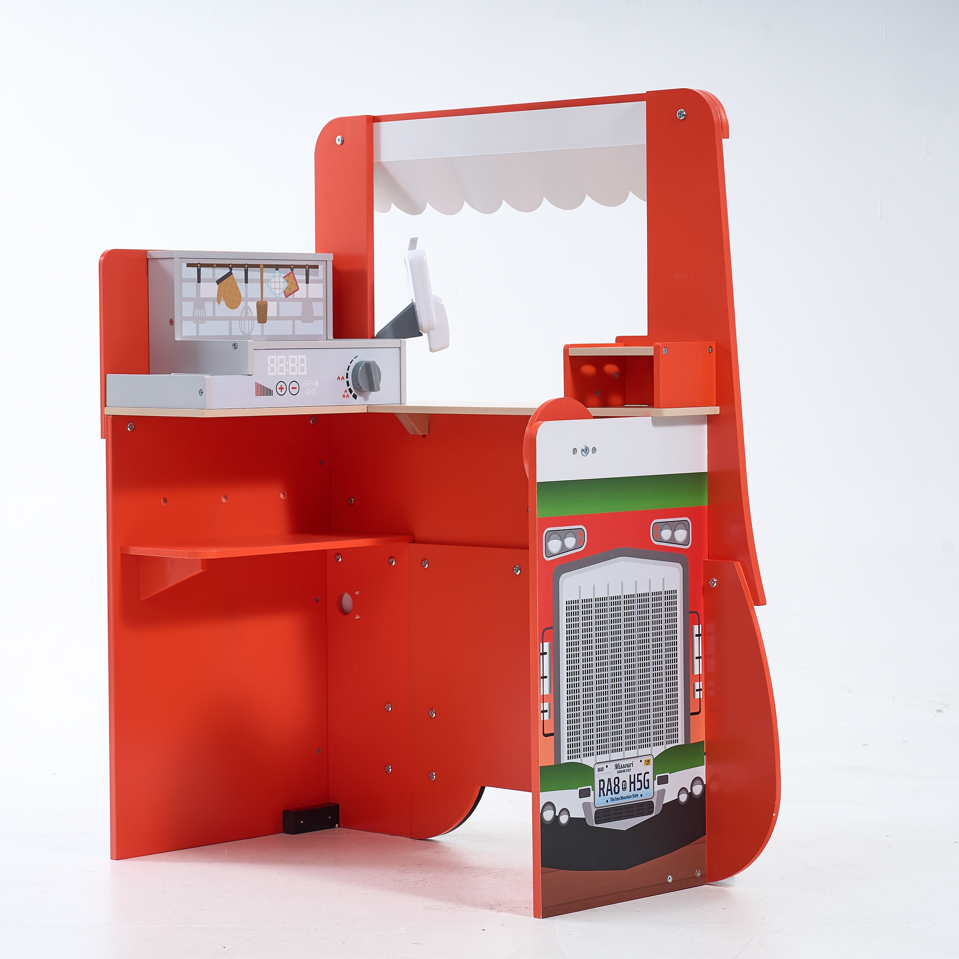 iYofe Wooden Pizza Food Truck Activity Center with Play Food, for Boys and Girls 3+