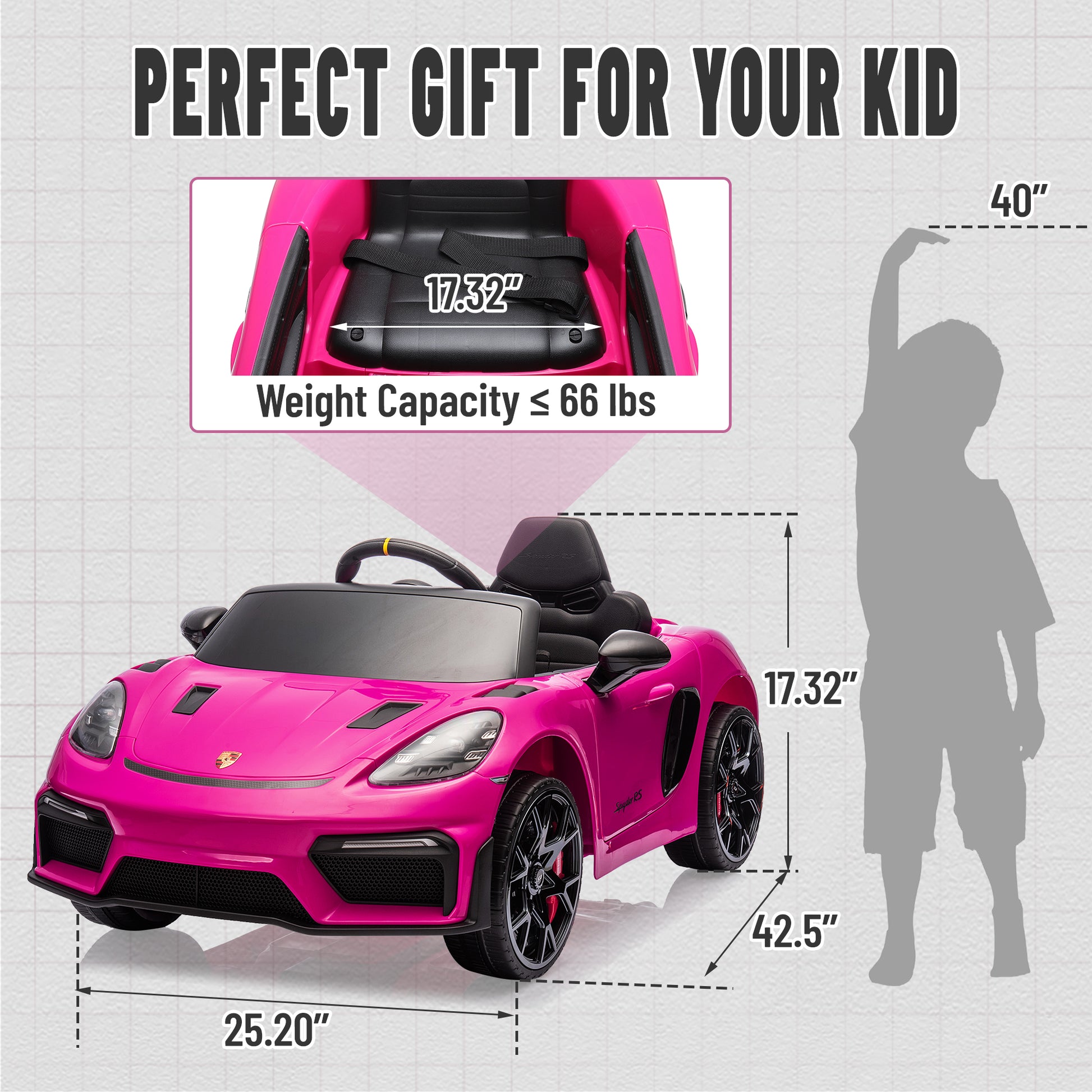 Porsche 718 12V Powered Ride on Toys, Kids Ride on Cars Sports Car with Remote Control, 4 Wheel Suspension, Bluetooth, Music, LED, Safety Belts, Electric Car for Toddler 3-6 Yr Boys Girls Gifts, Pink