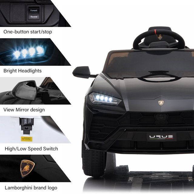 Ride on Toys for Kids, Lamborghini 12V Electric Ride on Car with LED Headlights, Horn, MP3 Player, Kids Car for 3-4, Rechargeable Battery-Powered Vehicle for Girl Birthday Gift, Black