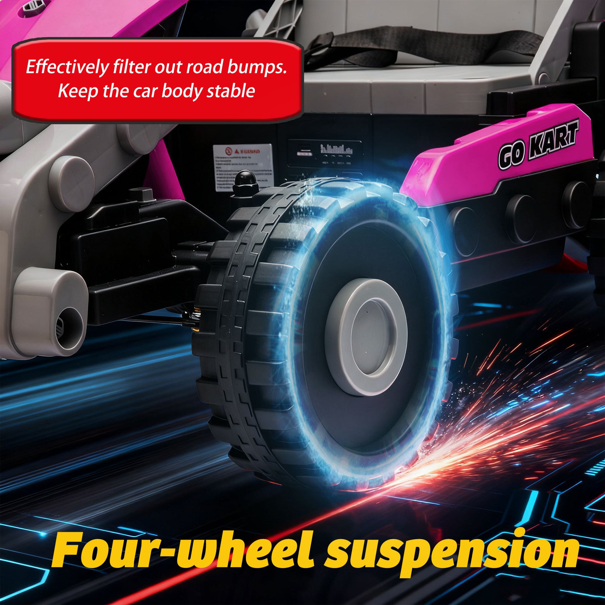🗺【Suspension System】: Our ride on toy boasts a cutting-edge four-wheel suspension system for unparalleled stability across all terrains. Whether on sidewalks, playgrounds, or bumpy roads, the innovative design absorbs shocks effectively, providing a smooth and comfortable ride. The six evenly distributed wheels ensure optimal balance and traction.